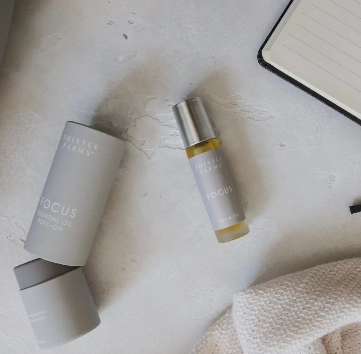 Experience an energizing essential oil blend designed to replenish stamina, promote concentration, and inspire creativity with our Focus Essential Oil Roll-On, a naturally handcrafted blend designed to center your mind and comfort your spirit. Simply roll onto pulse points for an instant moment of peace. Each purchase directly supports Thistle Farms' mission to rebuild lives and empower women survivors through safe housing, meaningful employment, and lasting lo sisterhood. By choosing this product, you're not just caring for yourself—you're helping resilient women thrive and reclaim their futures.