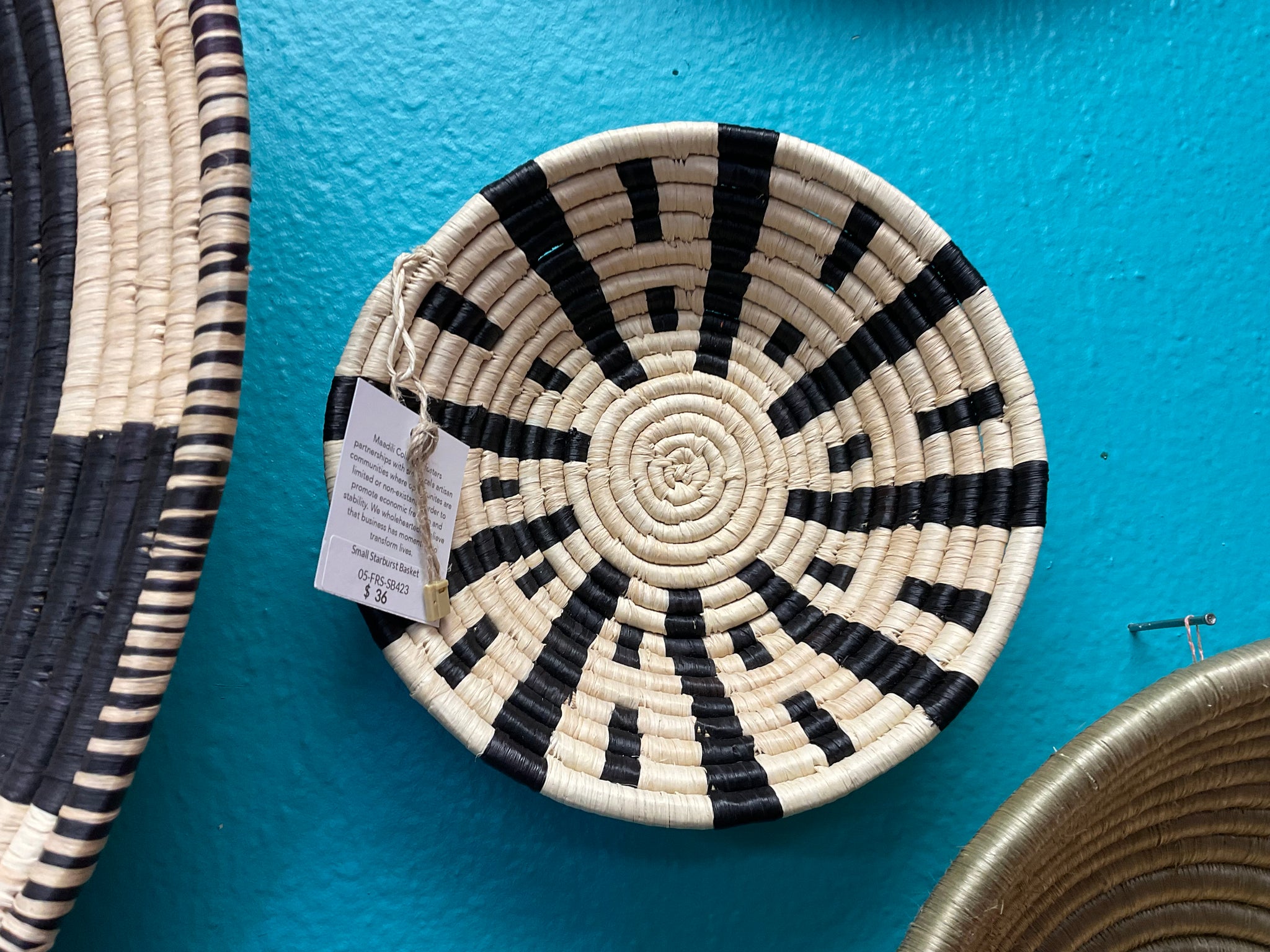 Weavers hand make each basket from home while tending to other household duties. Baskets can take days to weeks to complete with artists weaving 3 or so hours per day while balancing other responsibilities.