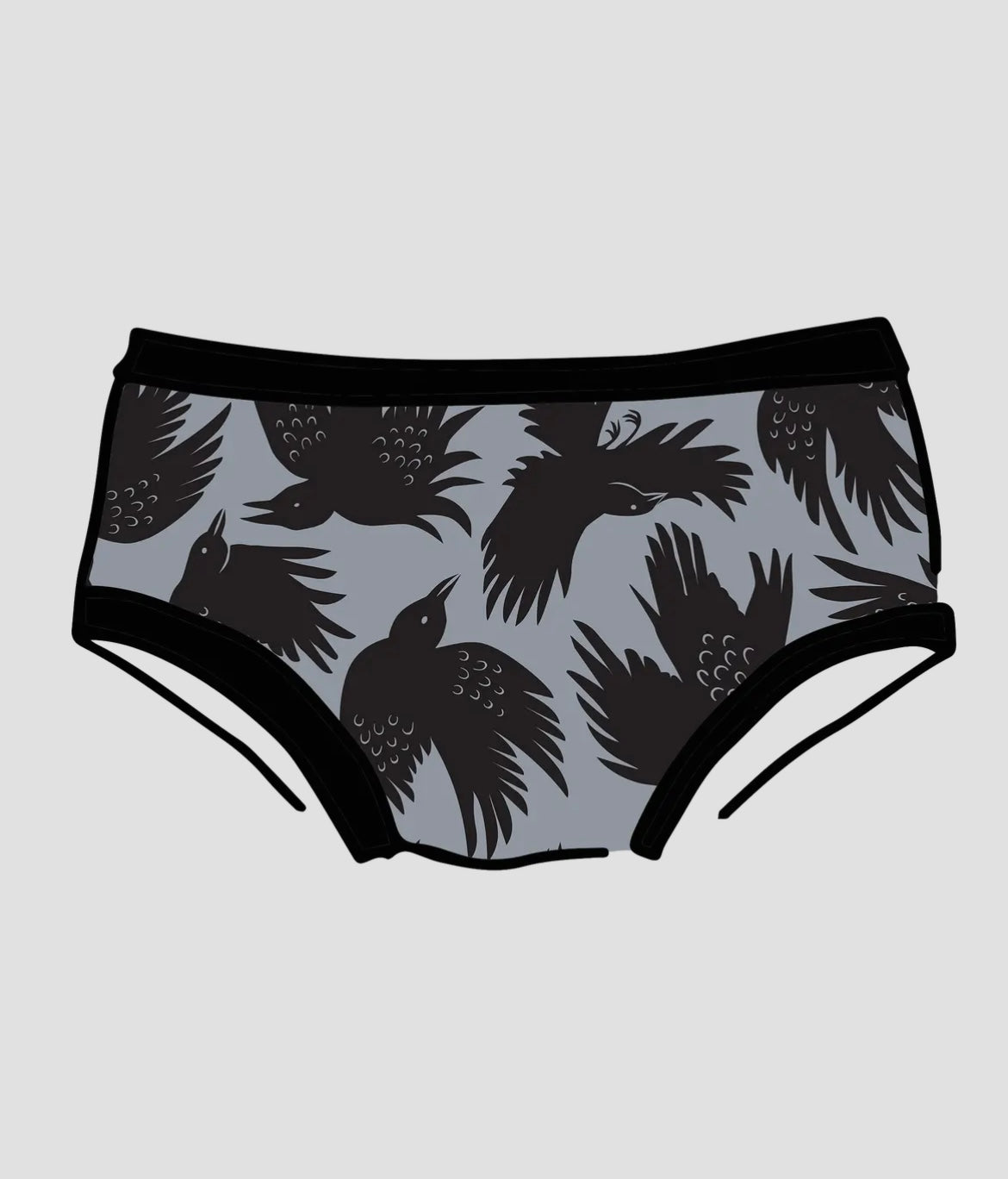 The Hipsters So It Crows Undies are made with an organic cotton/spandex blend fabric milled in the USA specifically for Thunderpants products (you can't find the fabric anywhere else). Their fun and cheeky prints are designed by women illustrators from all over and printed using water based inks in LA.
